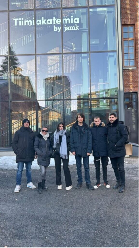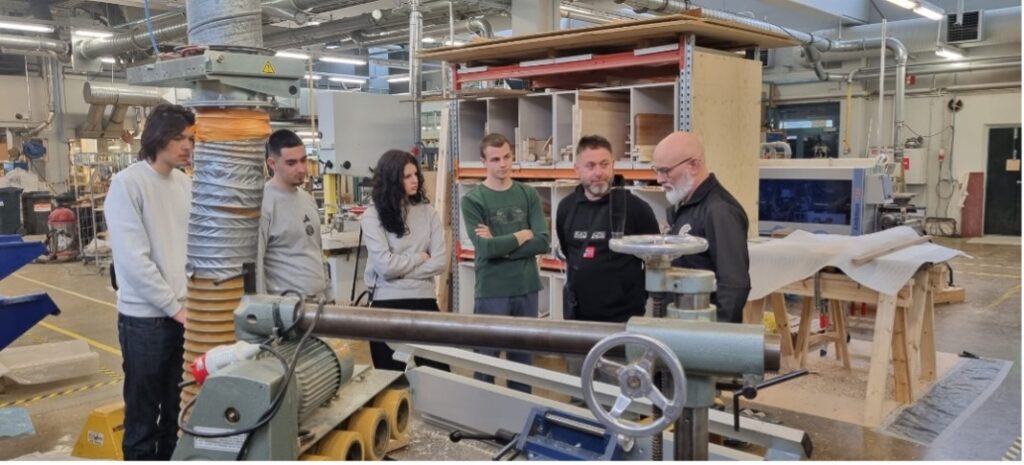 Učenici 3. razreda zanimanja drvodjeljski tehničar-dizajner i stolar tijekom mobilnosti u Finskoj, gdje su 3 tjedna na praktičnoj nastavi u školskoj radionici u školi Gradia Jyvaskyla.
